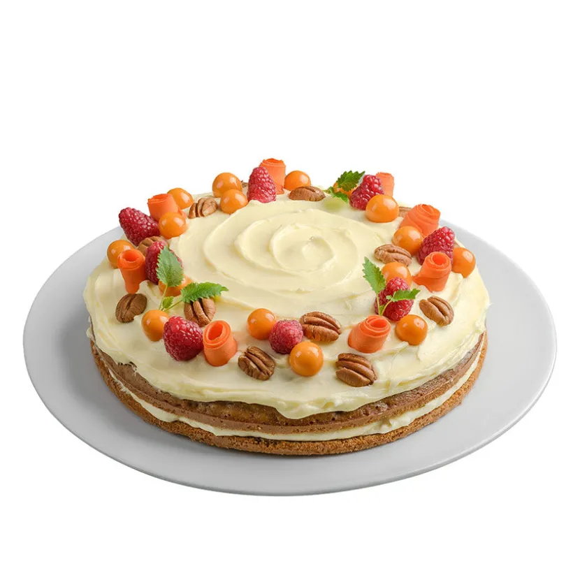 Tåler oppvaskmaskin. Kakefatet passer sammen med lokket som kan kjøpes fra Bake It Easy. Ringen som kommer med lokket passer ikke til kakefatet på 34 cm.