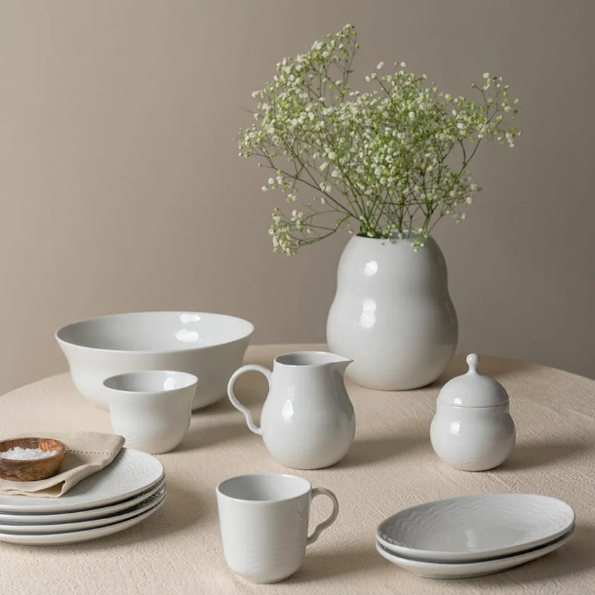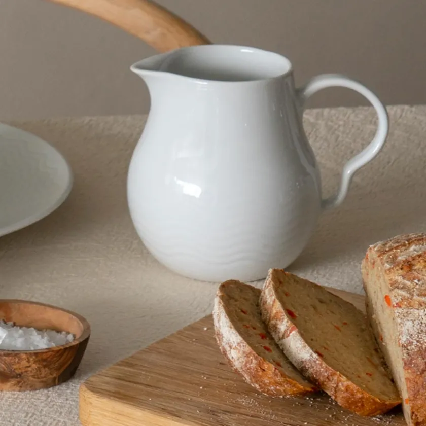 Sausemugge fra Porsgrunds Porselænsfabrik, i den nydelige serviseserien Bølge Hvitt. Bølge-serviset er inspirert av historien til Porsgrund Porselen og hvordan porselenet ble fraktet den lage veien over havet frem til fabrikken. Derfor har porselensserviset fått et vakkert og tidløst bølgerelieff som går igjen i alle servisedeler. Sausemuggen rommer 10 cl.