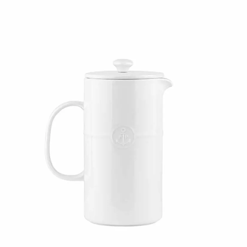 Denne ildfaste presskannen i hvitt porselen er det perfekte valget for deg som ønsker en kombinasjon av funksjonalitet og stil. Med en kapasitet på 1 liter kan den brygge opptil 7 kopper aromatisk kaffe, ideell for lange frokoster eller hyggelige kaffestunder med venner og familie.Det robuste porselenet holder bedre på varmen enn tradisjonelle glasskanner, slik at kaffen forblir varm lenger. Den glaserte overflaten gir ikke bare en elegant finish, men gjør også kannen enkel å rengjøre og motstandsdyktig mot riper. Designet er både tidløst og moderne, slik at den passer inn i ethvert kjøkken.Tåler oppvaskmaskin og er en del av den bærekraftige Ildfast-serien, som kombinerer holdbarhet med estetikk. Kombiner med ildfaste serveringsfat for en stilren og helhetlig borddekking.