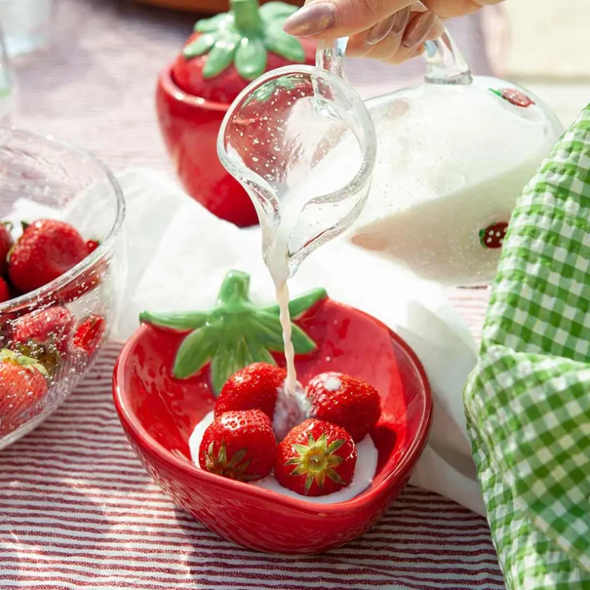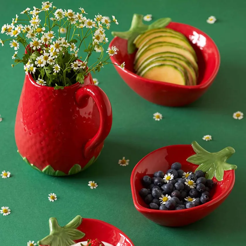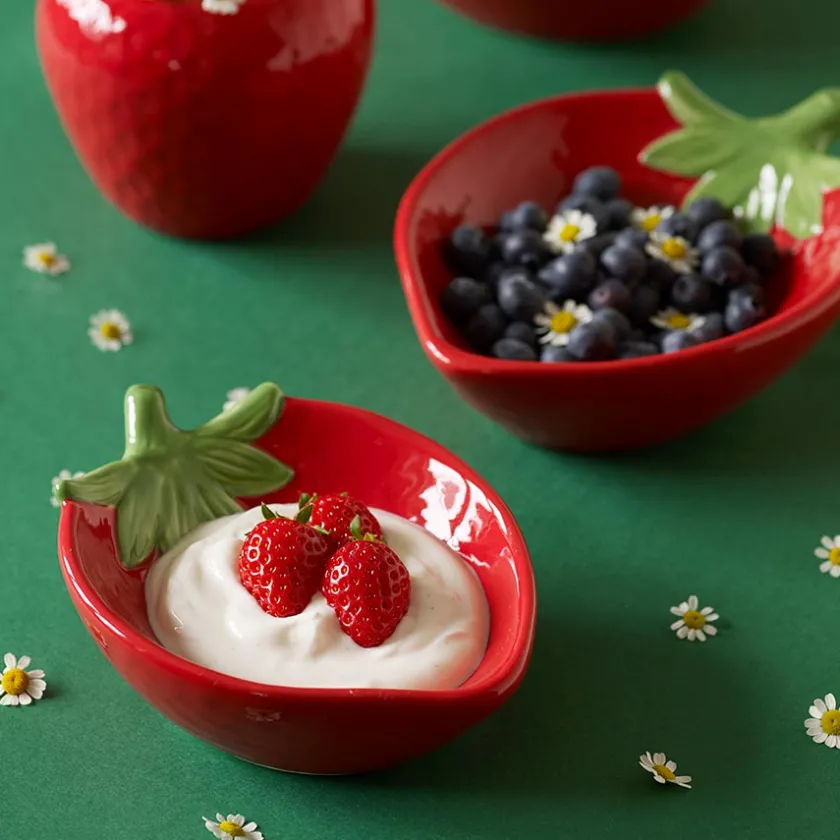 Skål fra den søte serien Jordbær fra Porsgrunds Porselænsfabrik. Med et fargerikt og søtt uttrykk tilfører jordbærskålen en liten bit av sommeridyll til bordet, enten det er friske bær eller tilbehør til maten som fyller den. Skålen måler 21 cm x 15 cm.