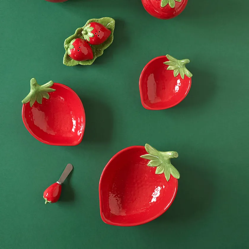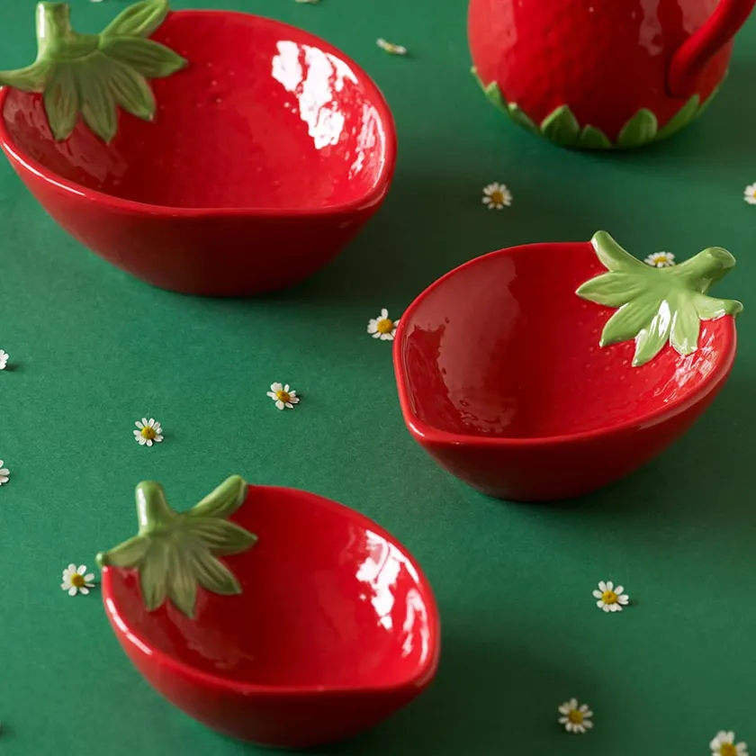 Skål i et vakkert jordbærdesign fra Porsgrunds Porselænsfabrik. Serien Jordbær er en flott samling av servisedeler som sprer friske farger og sommeridyll på bordet, perfekt til servering av friske desserter og snacks til de varme vår og sommerdagene. Jordbærskålen måler 26 cm x 19 cm.
