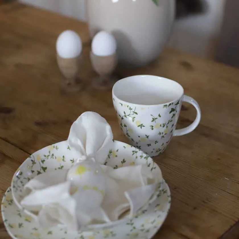 Start dagen med en kopp kaffe eller te i denne vakre, gule Maia-koppen. Med sin store kapasitet på 37 cl er den ideell for lange, hyggelige frokoster eller en avslappende kaffepause. Den varme gulfargen og det småblomstrete mønsteret gir en følelse av solfylte dager året rundt. Tåler oppvaskmaskin og mikrobølgeovn for enkel bruk i hverdagen