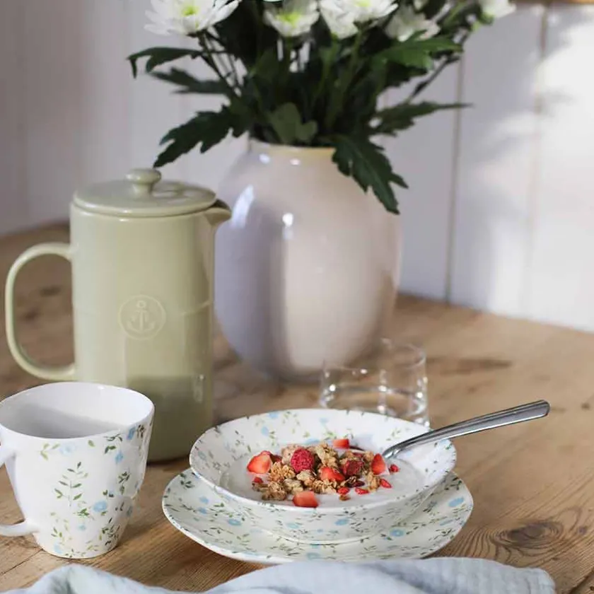 Denne blå Maia-tallerkenen fra porsgrund Porselen tilfører en klassisk og elegant stil til bordet. Perfekt til lunsj, småretter eller dessert. Den vakre blåfargen og det blomstrete mønsteret skaper en rolig og harmonisk atmosfære. Laget i slitesterkt porselen for varig kvalitet.