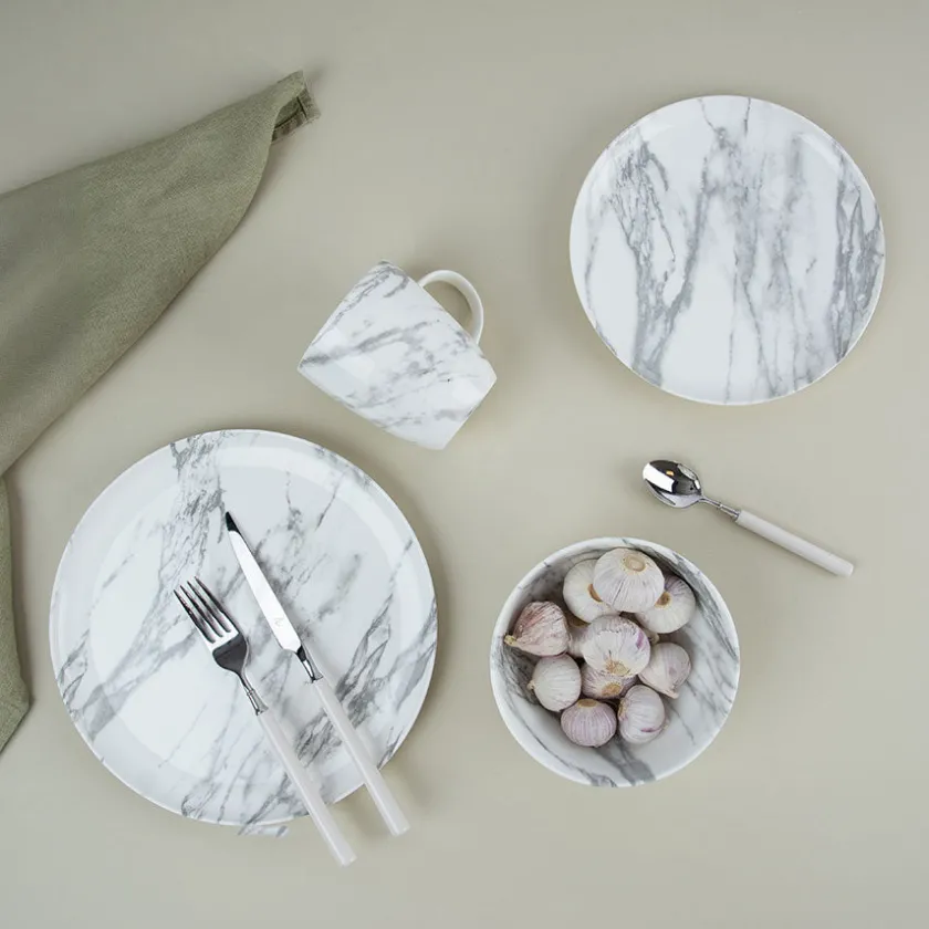 Laget i robust porselen som tåler både varme og kulde, er den lett å rengjøre og tåler både oppvaskmaskin og mikrobølgeovn. Kombiner den med de andre delene i Marmor-serien for en helhetlig borddekking som oser av stil og kvalitet.