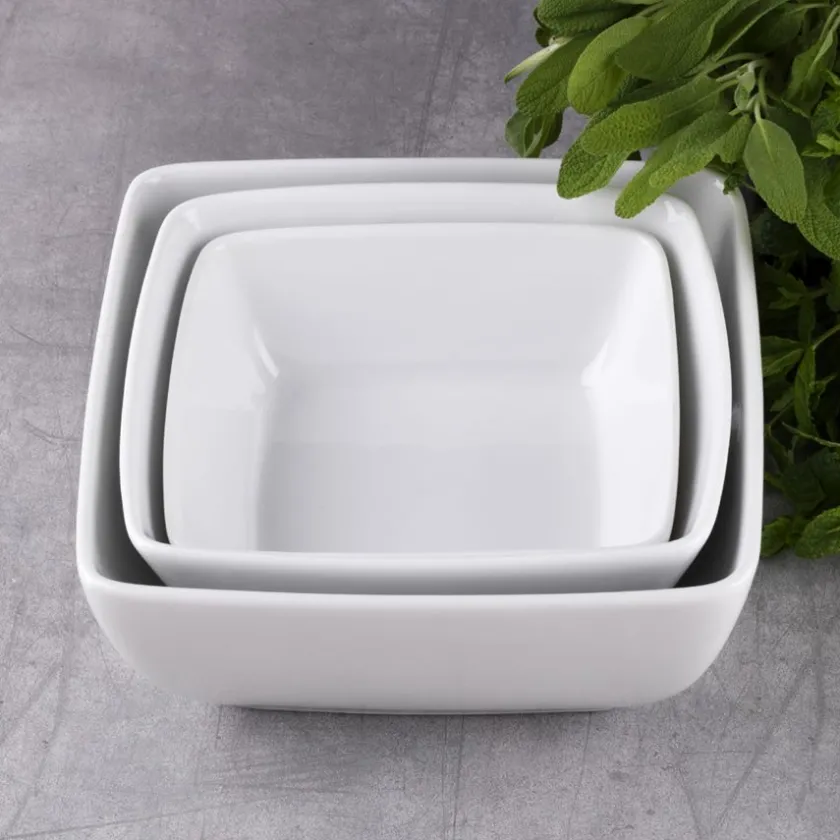 Serveringsboller fra Sense, Porsgrunds Porselænsfabriks mest komplette servise. De tre serveringsbollene rommer 2 liter, 1,3 liter og 0,8 liter og passer perfekt til servering av både tilbehør og hovedrett. Serviset Sense har livstidsgaranti på kantskår og tåler både ovn, mikro, fryser og oppvaskmaskin.