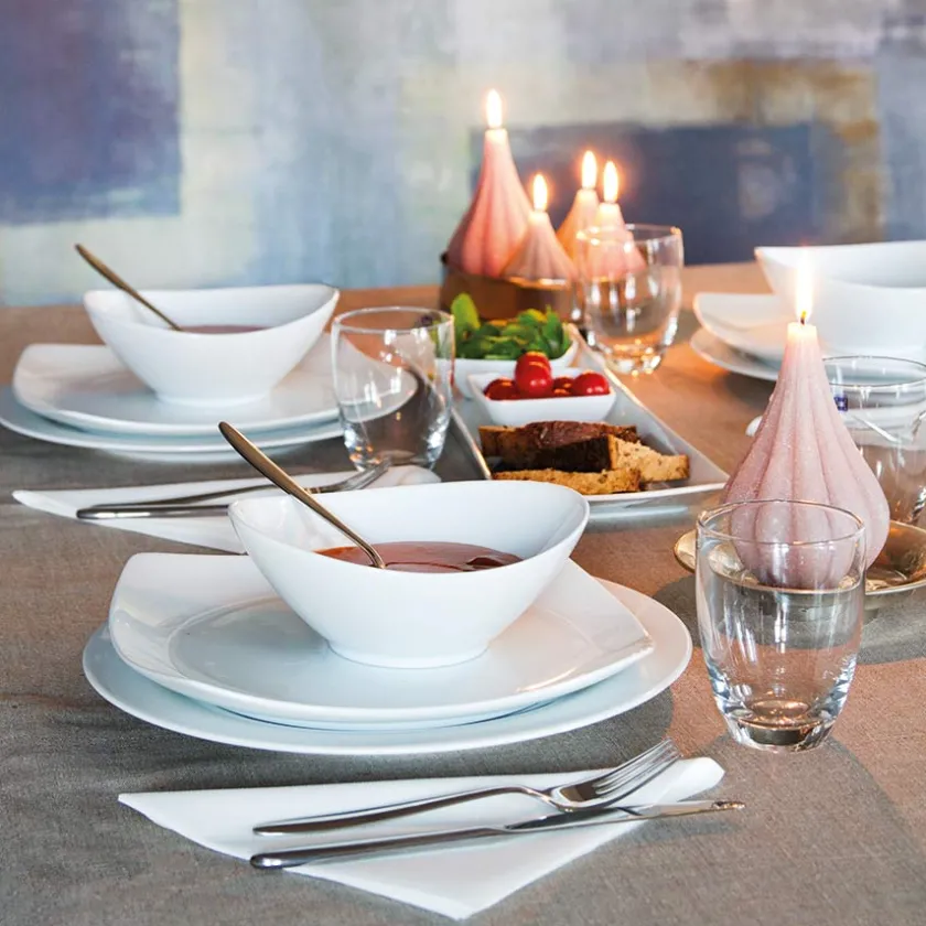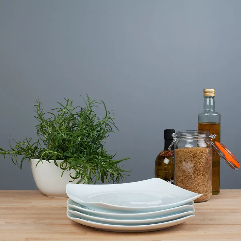 Firkantet middagstallerken fra Porsgrunds Porselænsfabrik. Serviseserien Sense er Porsgrunds mest komplette servise med alt fra krus og asjetter til skåler og sausenebb i porselen. Den firkantede tallerkenen gir et moderne uttrykk på et klassisk hvitt servise og passer utmerket til både hverdagen og festlige anledninger. Tallerken måler 27 cm i diameter og kan vaskes i oppvaskmaskin.