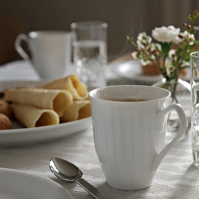 Spire-kruset på 28 cl fra Porsgrunds Porselænsfabrik er et elegant tilskudd i den populære serviseserien. Med sitt delikate relieffdekor i hvitt porselen og myke former inspirert av dekorelementet «spiren», er dette kruset like fint til hverdags som til fest.Designet bygger på Konrad Galaaens originale uttrykk fra 1952, og er revitalisert av Christian Svinddal og Nora Olafsdatter Krogh for å passe inn i en moderne livsstil. Kruset har et tidløst formspråk som forener tradisjon med nåtid – perfekt for deg som verdsetter både estetikk og funksjon.Det kompakte 28 cl-formatet passer utmerket til kaffe, te eller andre varme drikker, og gjør kruset til et naturlig valg i enhver borddekking.