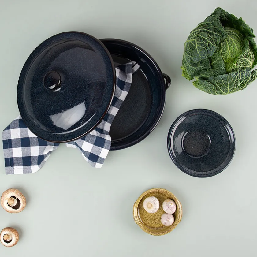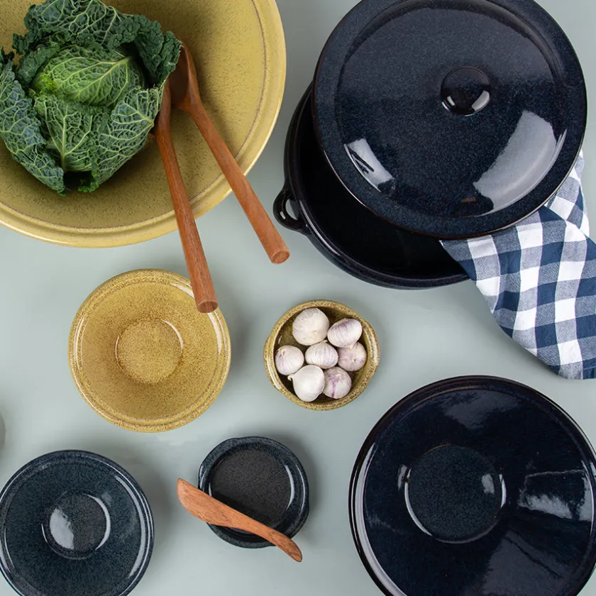 Terra Tapasform på 12 cm i fargen Ocre er perfekt for servering av småretter, snacks eller desserter. Den varme fargen og håndlagde finishen skaper et innbydende uttrykk.Formen tåler høy varme og kan gå rett fra ovn til bord.