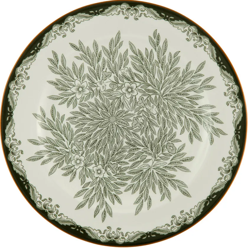 Denne middags¬tallerkenen på 27 cm fra Ostindia Floris-serien gir borddekkingen et sofistikert uttrykk med sin dype grønne dekor. Fargen er inspirert av Rörstrands historie, og minner om frodige landskap og naturlig skjønnhet. Tallerkenen kombinerer det ikoniske Ostindia-mønsteret med en moderne vri, som gjør den til en tidløs klassiker som passer både til hverdags og til fest.