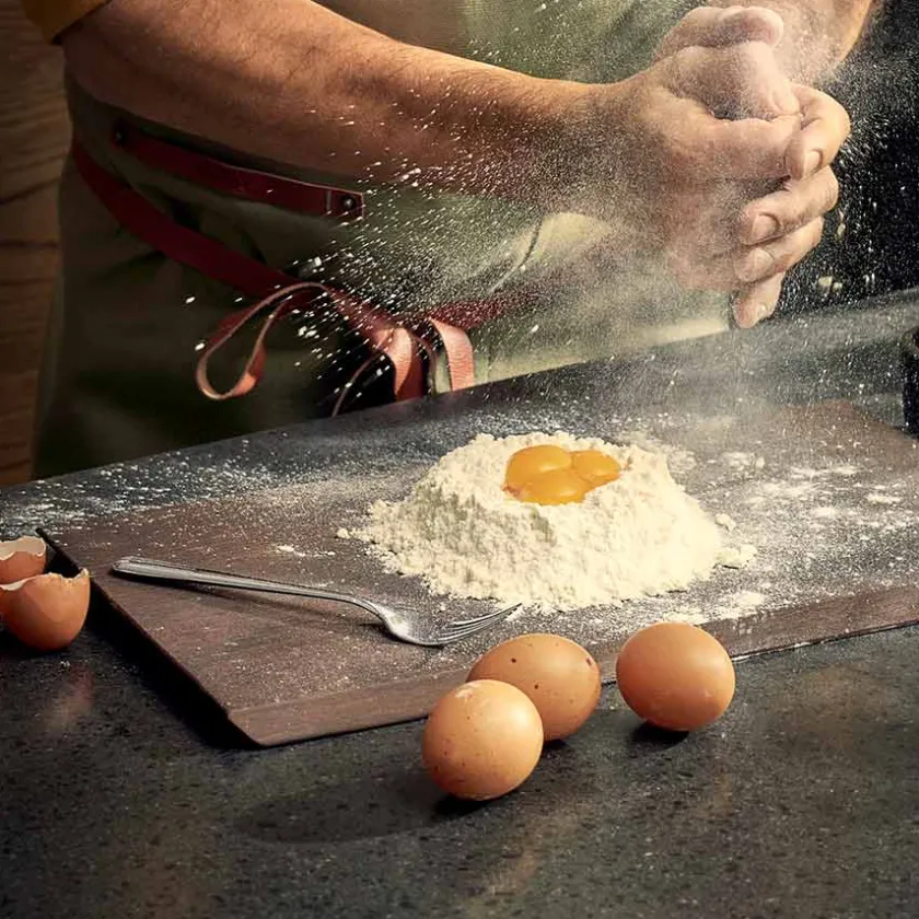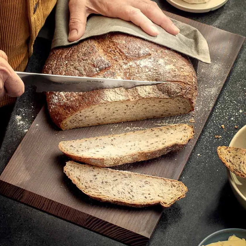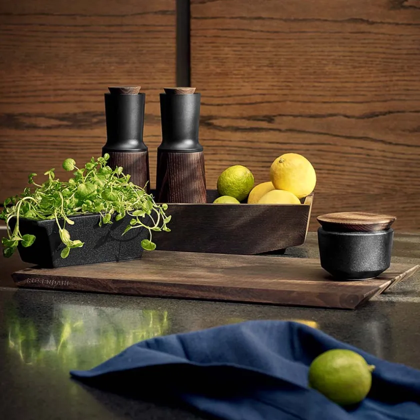 Skjærebrett fra Rosendahls serie Rå som er skapt i samarbeid med den danske kokken Jesper Vollmer og utviklet med mange års kunnskap og erfaring. Skjærebrettet er laget i varmebehandlet asketre og er 44 x 25 cm.