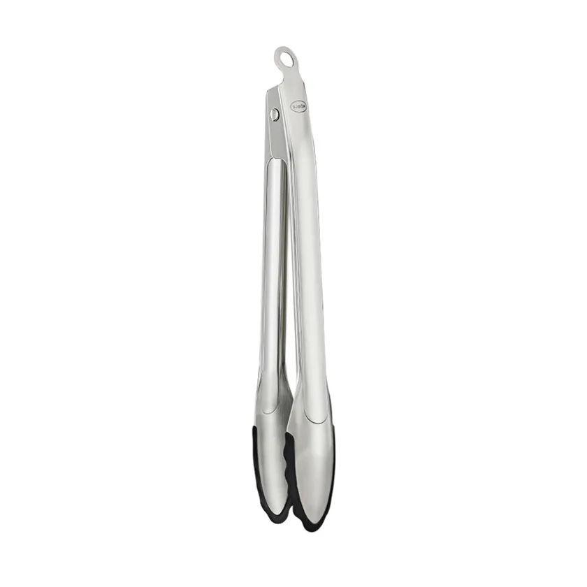 Låsbar tang på 30 cm med patentert åpnemekanisme fra Rösle. Tangen kan enkelt åpnes og lukkes med en hånd, og er utstyrt med silikonbelegg som gjør at den ikke lager riper i panner og gryter. Egnet til bruk i alle kokekar, med og uten belegg, og tåler oppvaskmaskin.