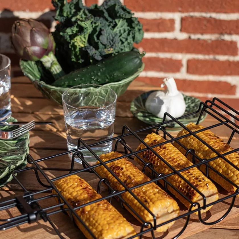 Gjør maisgrillingen enkel og effektiv med denne spesialdesignede grillristen! Med plass til opptil fire, store maiskolber holder risten maisen stabil og jevnt grillet, uten at de triller rundt på risten. Laget i robust jern med non-stick-belegg og et komfortabelt håndtak i tre, er dette et praktisk og stilfullt grillverktøy for sommerens mange måltider utendørs.Risten er 53 cm lang og gir god avstand fra grillens varme, slik at du enkelt kan snu og håndtere maiskolbene. Perfekt for grilling i hagen, på hytta eller piknik – og anbefalt håndvask gjør at non-stick-belegget holder seg pent lenge.