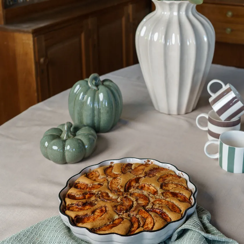 Dette store dekorative gresskaret i keramikk fra Fall Collection – Seasons er en stilig og stemningsfull detalj til høstens interiør. Med en høyde på 17 cm og en vakker, glansfull grønn glasur, er det et naturlig blikkfang på spisebordet, kommoden eller i vinduskarmen.