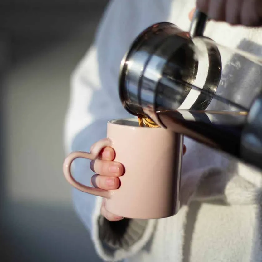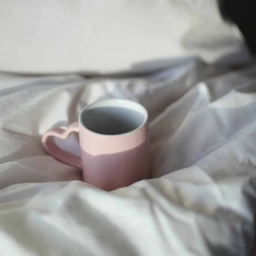 Dette romantiske rosa kruset har en hjerteformet hank som tilfører en ekstra dose sjarm til kaffepausen din. Med sin delikate farge og stilrene design passer det perfekt til morgenkaffen, kveldsteen eller kakao på en kjølig dag. Kruset er laget av keramikk, noe som sørger for god varmebevaring og en behagelig drikkeopplevelse. Den unike hjertehanken gir et morsomt og søtt preg, samtidig som den ligger godt i hånden. Tåler oppvaskmaskin, så rengjøringen blir enkel og praktisk. En flott gaveidé til noen du er glad i – eller til deg selv!