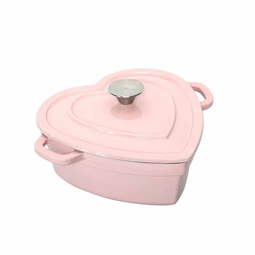 Gi matlagingen et romantisk preg med denne hjerteformede støpejernsgryten i en nydelig rosafarge. Perfekt for å lage gryteretter, supper og ovnsbakte retter med jevn og effektiv varmefordeling. Med en kapasitet på 2,8 liter er den ideell både til hverdagsmiddager og spesielle anledninger.Den emaljerte overflaten gjør gryten enkel å rengjøre og beskytter mot slitasje. Den tåler temperaturer opptil 260 °C i ovn og fungerer på alle koketopper, inkludert induksjon. Det stilfulle designet gjør den like flott til servering som til matlaging!