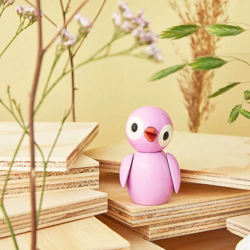 Fuglen er skapt i FSC-sertifisert bøk og kombinert med plastdetaljer som sikrer kvalitet og varighet. Powerful Pink er en unik designfigur som både fungerer som dekorasjon og som et inspirerende symbol på styrke, frihet og individualitet.