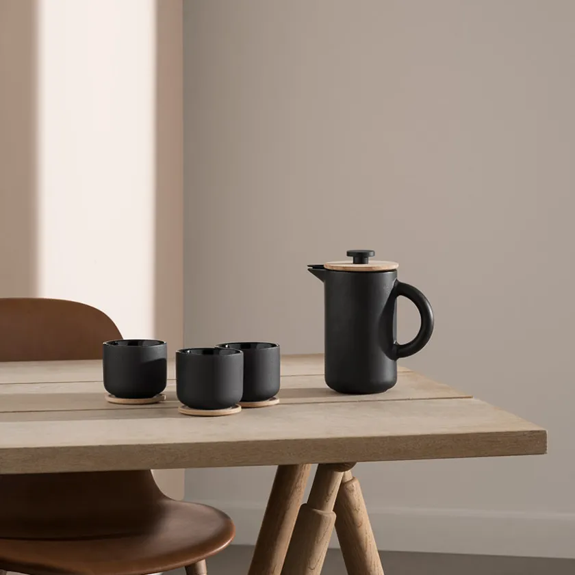 Kruset tåler oppvaskmaskin. Glassbrikken må vaskes for hånd