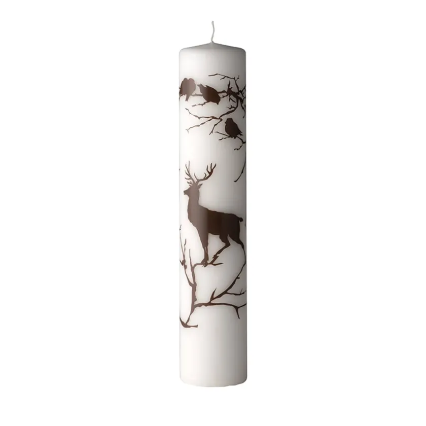 Lys i 25 cm x 5 cm fra Wik & Walsøe i serien Alveskog. Lys opp høsten og vinterens mørke tider med det eventyrlige lyset prydet av den majestetiske hjorten.