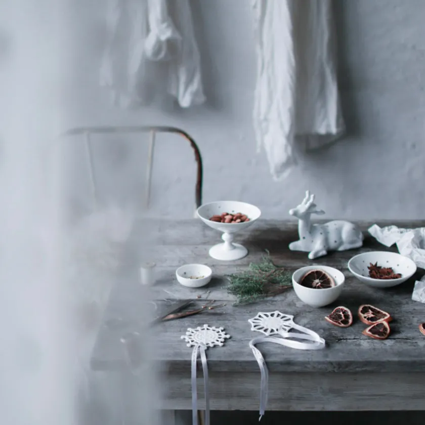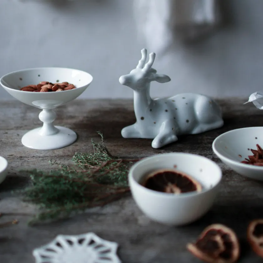 Liten bolle fra eventyrlige Stjernedryss og Wik & Walsøe. Den flotte serien i hvitt benporselen kommer med detaljer inspirert av den enkle og rene stjernehimmelen som skinner på en stille og klar vinternatt. Bollen måler 12 cm og er utmerket til servering av julens søtsaker, til oppbevaring av småting eller stående alene og skinne som et dekorelement.