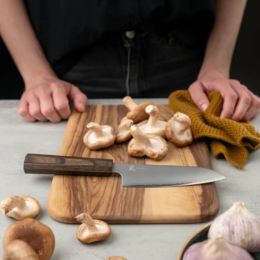 Santokukniven fra Yaxells Hana-serie på 12,5 cm er den perfekte kniven for deg som ønsker en smidig og allsidig kniv med japansk preg. «Santoku» betyr «tre oppgaver» – og kniven er nettopp designet for å kutte, hakke og skjære med høy presisjon. Den avrundede spissen og det kompakte bladet gir maksimal kontroll, spesielt ved arbeid med mindre råvarer som urter, grønnsaker og frukt.